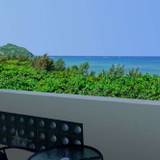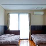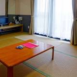 お部屋は10畳の和室でした。スーツケースを広げたままでも大丈夫です。ベランダも広く洗濯ロープもありました。ベランダ先は庭と林の向こうの海なのでとても開放感があり、夕日も眺められます。