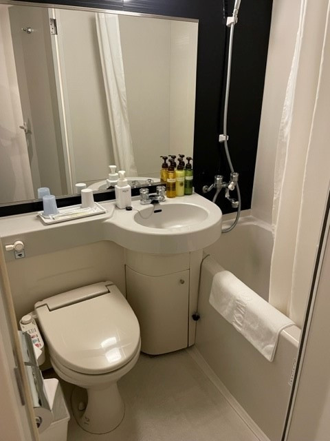 泊まったのはセミダブルルームで、ベッドは大きいですし、思ったよりも部屋の広さもありました。デスクなど設備もしっかりしており、部屋での滞在の快適さを考慮した造りになっていると感じました。都心に近いところにあるビジネスホテルとしては、価格を考えるとお得感がある広さでした。清潔感もしっかりしていて、バスルームも含めてきれいでした。