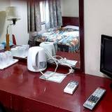 昭和のままの部屋のつくり。お世辞にも綺麗とはいえないが、アナログテレビの痕跡や、昔ながらのホテル案内がおいてある。