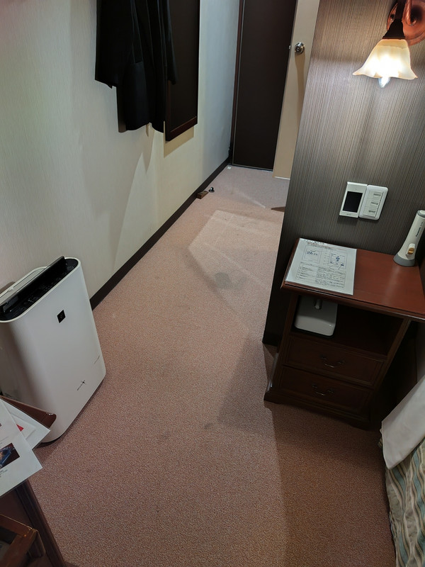 部屋のお風呂はベット幅と同じサイズだったので、お風呂も狭かったです。