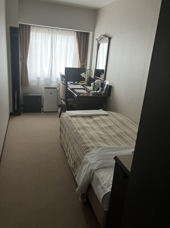 このホテルは、弘前市の中心地にあるホテルで、弘前駅と弘前城の中間くらいの位置にある。ホテルの最上階には、市内一の眺めを誇る朝食会場があり、津軽人の朝ご飯がコンセプトの和食を楽しむことができた。また、ホテル内には津軽三味線を聞けるダイニング「響」もあり、ホテルの客室は一般的なシティホテルのもので、清潔感はあるが、バスルームは狭かったのが残念だった。