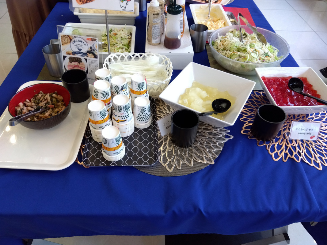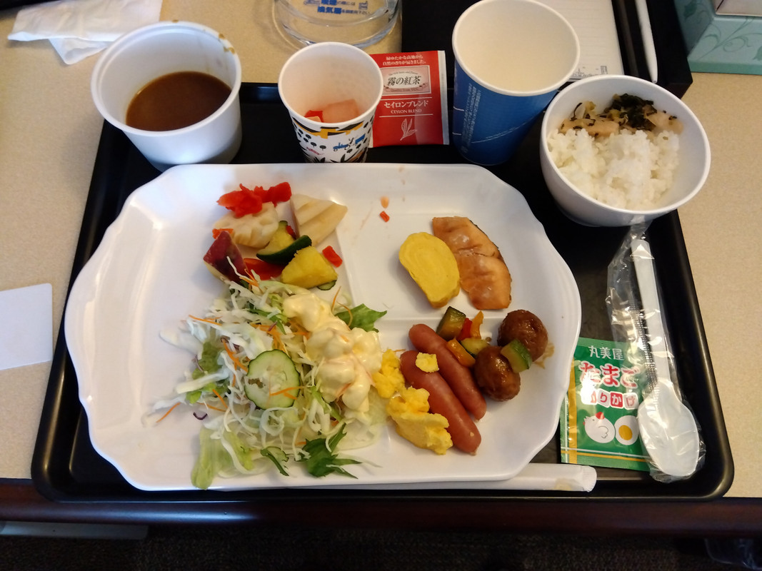 朝食は部屋で食べることもできますが、使い捨ての容器はなく、朝食会場と同じトレーや器でした。
