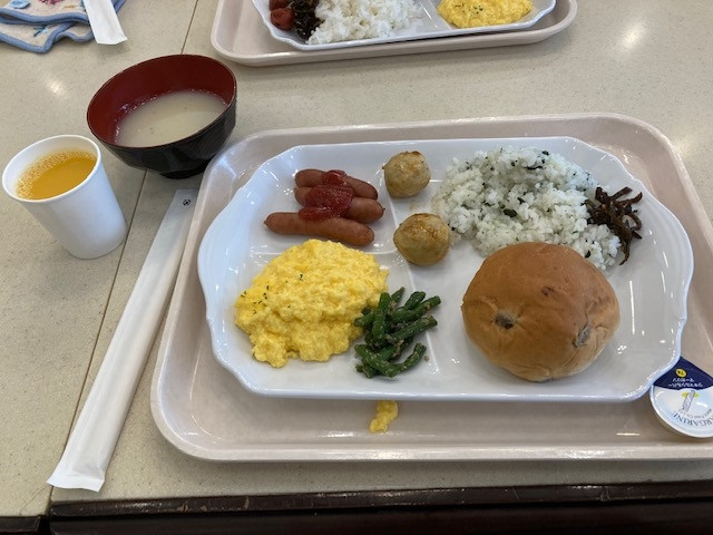 無料朝食がついていますが、開始時間30分ほどですでに無いおかずもあったのは残念。1 / 7