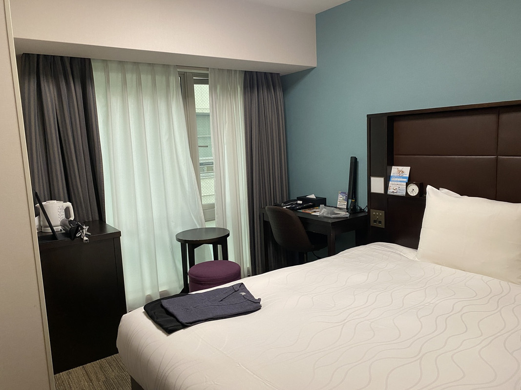 所用で6連泊しました。リッチモンドホテル系列は久しぶりです。シングルのベッドでも幅があって正面の大きなテレビが見られるので快適です。でもその分ベッド周りは人が歩くスペースが狭くて窮屈ですね。机も公式ウェブサイトで宣伝しているほどの広さは感じず、電話やティッシュが置いてあるのでPCを置いたらいっぱいいっぱいです。お風呂とトイレも余裕のある造りだとは思いますがバスタオルがバスタブの端の上に置いてあってこれじゃ湯気で湿気を吸うじゃんとか、お風呂の換気扇が弱くて洗ったタオルハンカチが一晩で乾かなかったりとか、細かな所では首を傾げたくなるような所もありました。