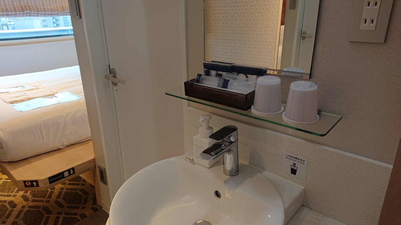 JRの福島駅から4分ほど。ドアを開けるといきなり洗面台があったのにはやや面喰いましたが新しくて綺麗なホテルでした。周囲が飲食店街でありこの点で困ることはありません。すぐ並びの食料品が結構充実しているスーパーで買いこんで部屋で楽しむのもありですね。