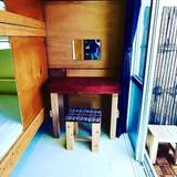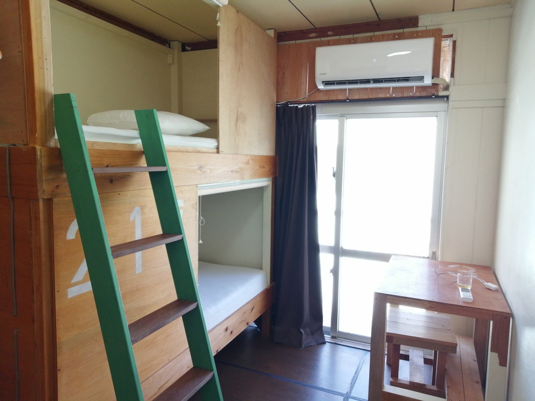 友人とツインに泊まりました。予約サイトから予約し1室7500円。ツインと言ってもベニア板が貼られた個室に二段ベッドが1つ。この二段ベッドも手作り感満載。シーツ類は清潔ですがコンセントの位置が悪く使い勝手が悪い。使う人の身になってもう少し考えてほしいです。この部屋でこの値段ははっきり言って高いと思う。