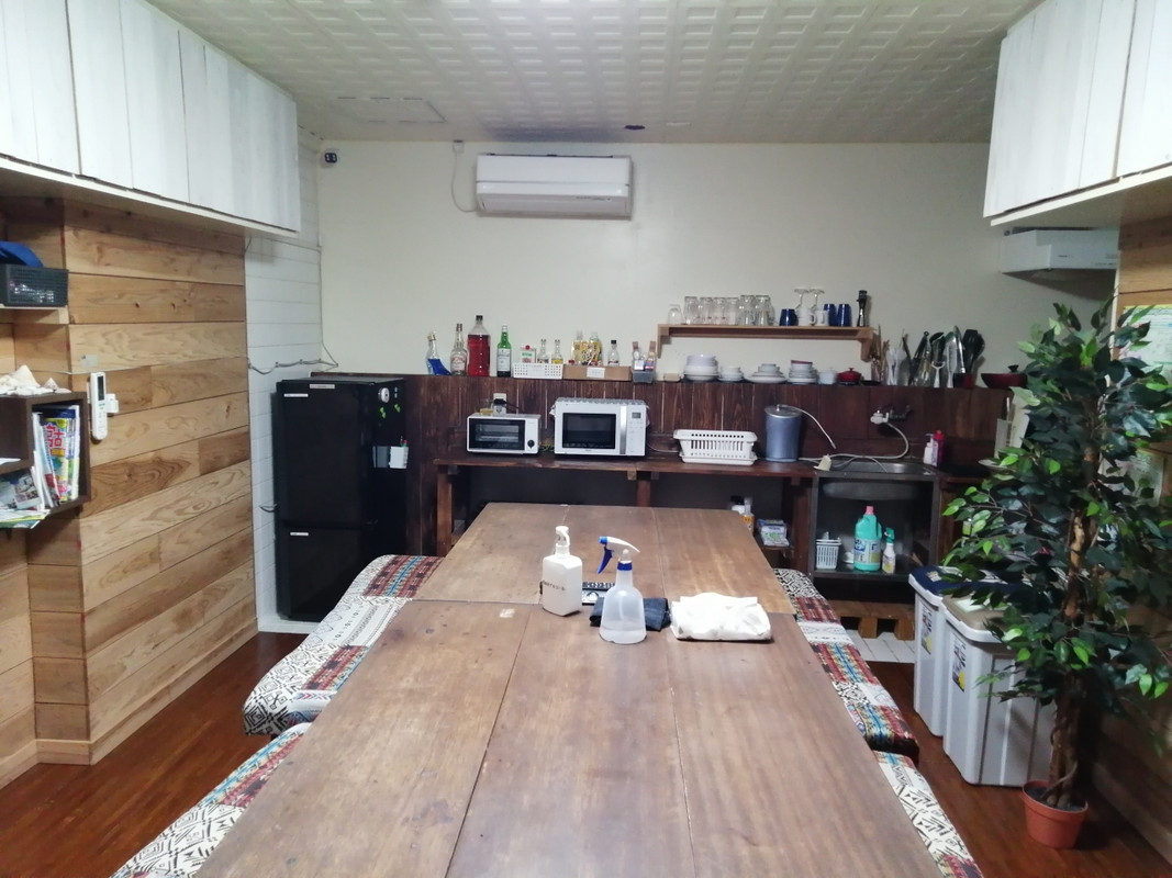 キッチンのあるゆんたくスペースは充実。先人たちが残して言ったフリーアルコールのラインナップが凄かった。