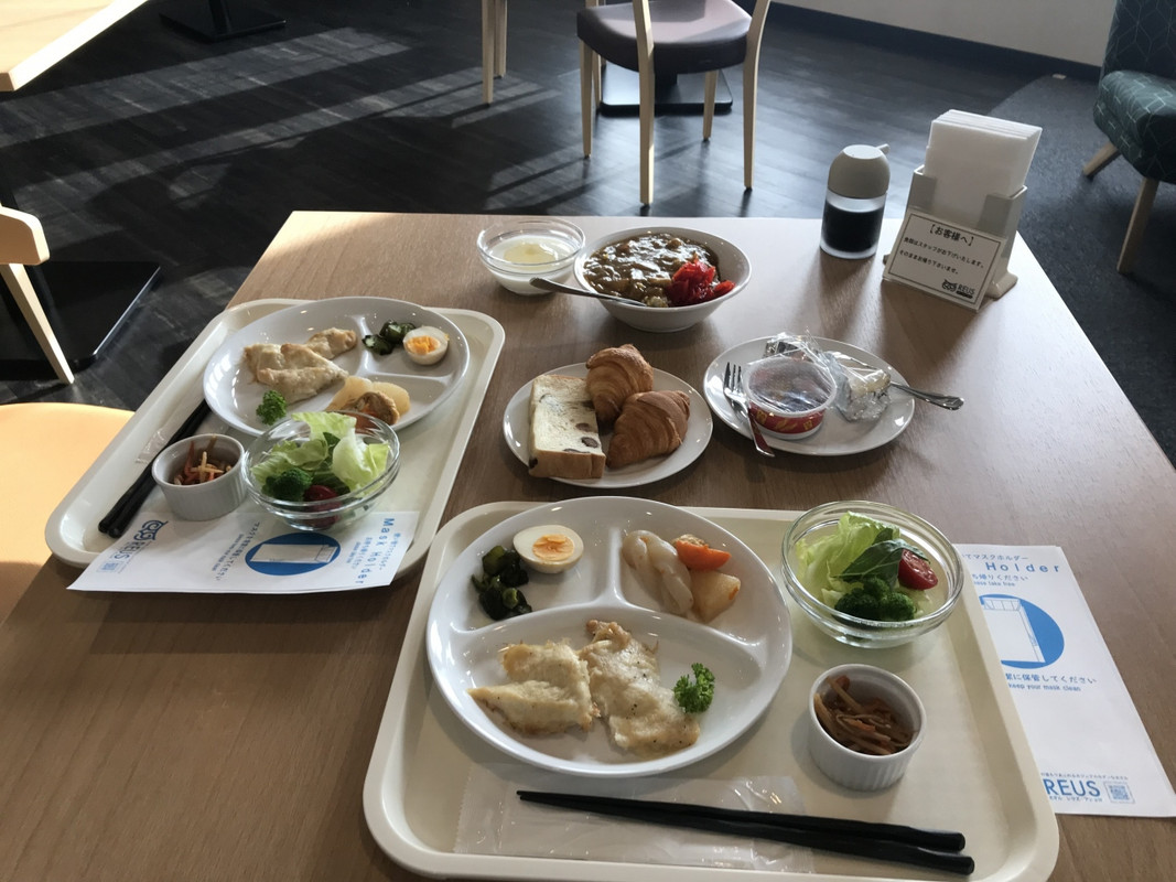 朝食には、近くにある高橋菓子店のパンが食べられます。お店の前を通った時、行列を目の当たりにしていたので、こちらで食べられて良かったです。