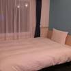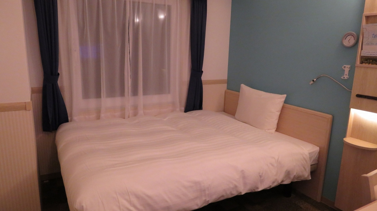 狭いけどかなり機能的。広めのベッドと、ベッドサイドの設備が良