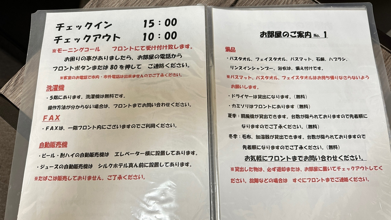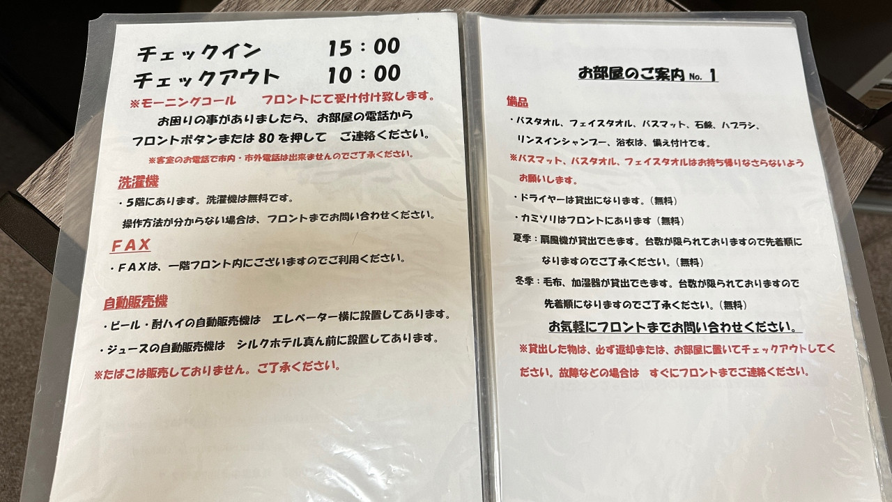 宿泊施設からのお知らせ