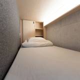 こじんまりとした清潔感のあるカプセルホテルです。1階がフロントやシャワーがあって2階が共用のリビングで3階が女性フロア、4.5階が男性フロアで各階に10数個のカプセルなのでこじんまりとしていて良かったです。2階のリビングに大きめのテレビがあり、カプセルにはテレビがないのが新鮮で良かったです。こじんまりとしていて他の人にほとんど会うことがなかったので落ち着けました。フロントの男の人が親切でした。