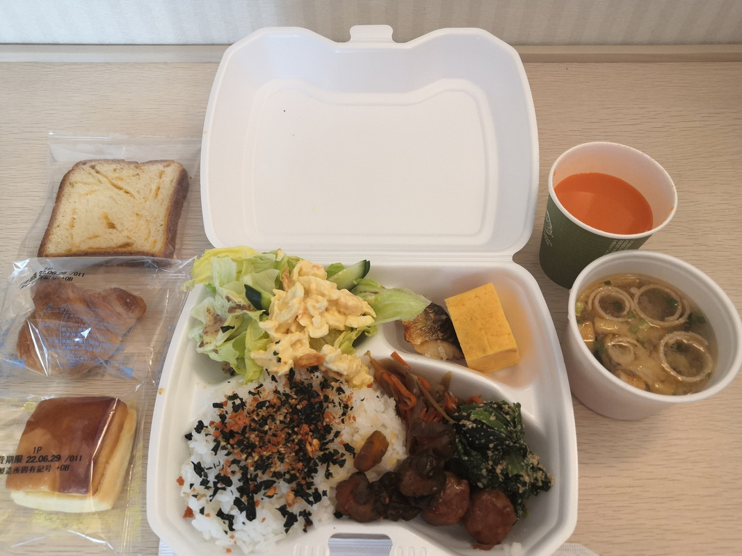食事ですが、パンは一人二個までと書かれています、子供用サイズかと思う程小さなパンです、朝ごはんにパンの方はこれでは足りませんね。
