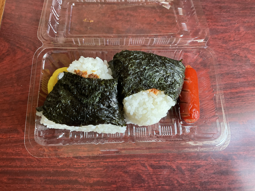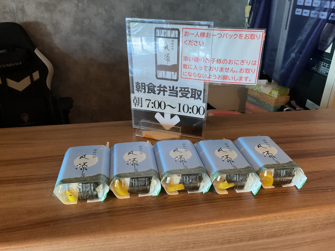 朝食はテイクアウト方式で、おにぎり2個でした。1 / 9