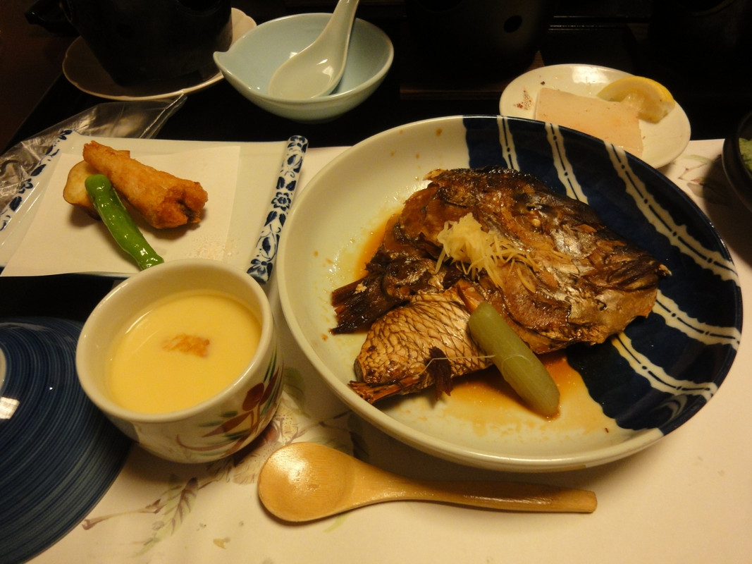 食事は、やはり鯛のお造りはもちろんおいしかったのですが、鯛のかぶと煮が絶品で感動しました。