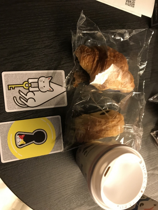 3階のロビーは広々としていて、3種類のパンとコーヒーのフリー朝食がありました。
