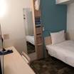 シングルでの予約になりましたが、案内された部屋のつくり、ベッドサイズはセミダブルサイズになっており、思った以上に快適でした。ベッドの寝心地も良かったです。バスルームもきれいですし、清潔感もしっかりとされています。私が泊まった部屋からは丸亀城も見ることができ、それも良かったです。