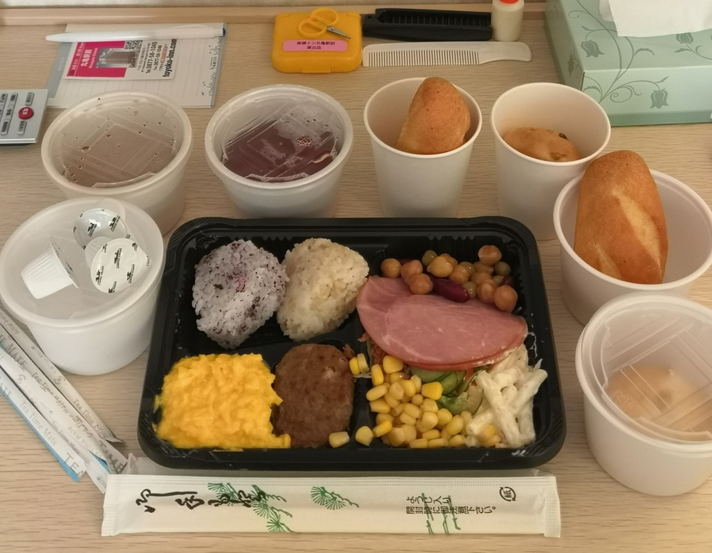 朝食はおかずの種類はそこそこあり、おいしかったです。ただ、食事会場はやや混んでいて落ち着かなかったです。それに加えて、夜にはうどんのサービスもありました。出汁がきいてておいしく、ちょっとしたことですが嬉しかったです。このうどんも含めて食事の評価はまずまず良い印象です。