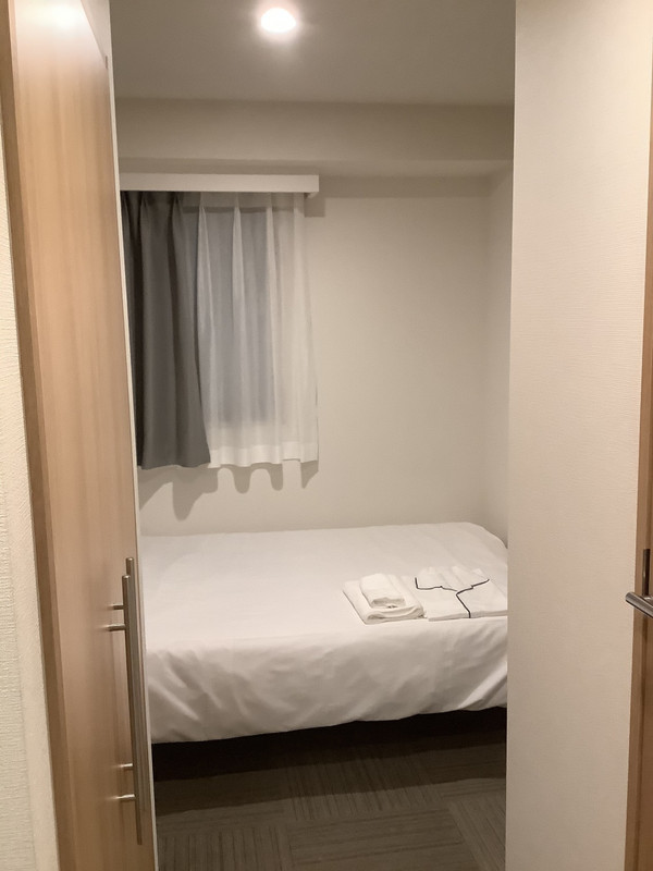 部屋は狭いけどコンパクトにまとめられており不便はない。まだ開業して間がないのか綺麗です。バスタブは無いが、シャワー、トイレ、洗面台が別々に分かれており、シャワー室はゆとりがある。狭いユニットバスより使い勝手がいい。ルームキーは無く暗証番号での入室。無料の水一本付き。アメニティはフロント横から必要分を持っていくシステム。クレンジングなどの化粧品類も常備。必要なものは揃っている印象。フロントが10時まで。それ以降は緊急連絡先の電話番号が掲示されている。