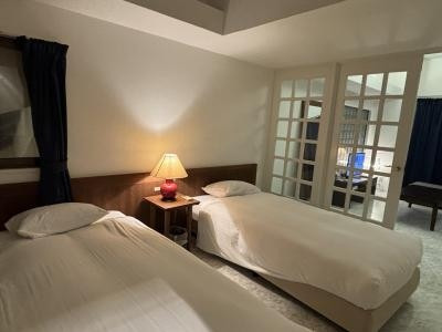 社員寮がホテルに改築されたそうで、ファミリー用マンションのような部屋の広さです。シングルベッドが2つ並ぶベッドルームが2つありました。
