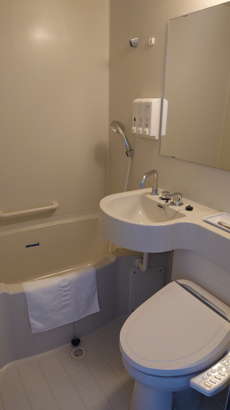 この手のビジネスホテルのユニットバスは段差があって、よく足をぶつけるのですが、こちらのホテルは段差が小さいのでぶつけることもない。