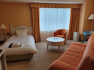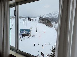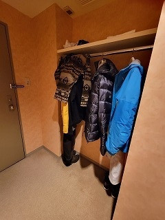 部屋(607号室)はゲレンデ側だったのでスキー場の様子が眺めることができた。部屋は広めで大きめソファーがあるのは良いが、テレビの向きが微妙(ベッド側からは見にくい)。クローゼットにはハンガーが4本のみで引き出しや棚が無かったのが不便だった。