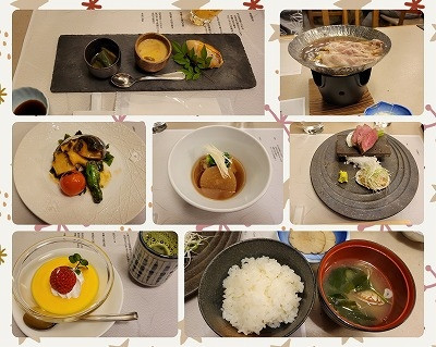 夕食は静かに落ち着いて食べたかったのでビュッフェではなく和食会食プランにした。1品1品丁寧に作られていて、ウェイターさんがきちんと料理の説明をしてくれたので良かった。朝食ビュッフェのメニューはまぁまぁ。タイミングが悪いとかなり行列になる。自分で作る味噌汁は面白い試みだが、味噌汁を作った事のない人は味噌の分量が分からず苦戦している様子だった。1 / 7