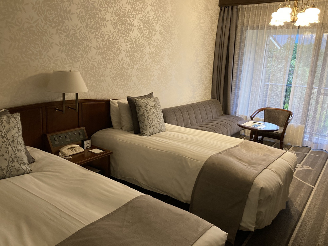 一番安い部屋は、あまり広くはありません(28平米)。でも、天井が高く、窓からの視界が開けているので狭苦しい感じは無いと思います。ベッドは固め、スプリングがちょっと軋みます。泊まった271号室は大浴場に一番近く、気軽にお風呂に出かけられました。