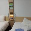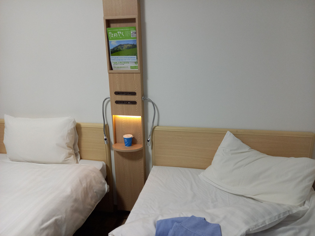 かなりオオバコなのにELV.2基は少ないかと。食堂にもなるロビー部分は吹き抜けで明るいです。洗濯機も食事室に面していて死角なし。あてがわれた部屋を見る限り新しい感じです。バスルームへのドアはシングルレバー(古い東横INNはまだドアノブのところ、結構あります)洗面シンクの蛇口とシャワー切り替えが新しすぎて手が濡れていると滑って扱いにくかった!レインシャワー付き。ただし廊下を会話しながら歩く人の声が駄々洩れ、とても安普請です。エアコン室外機がベランダ状のところに置いてあり、以前泊まった函館と同じくマンション風の外観です。富士山Viewのお部屋でした