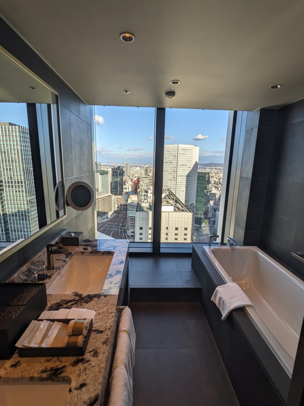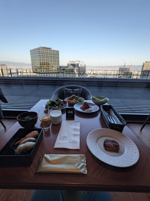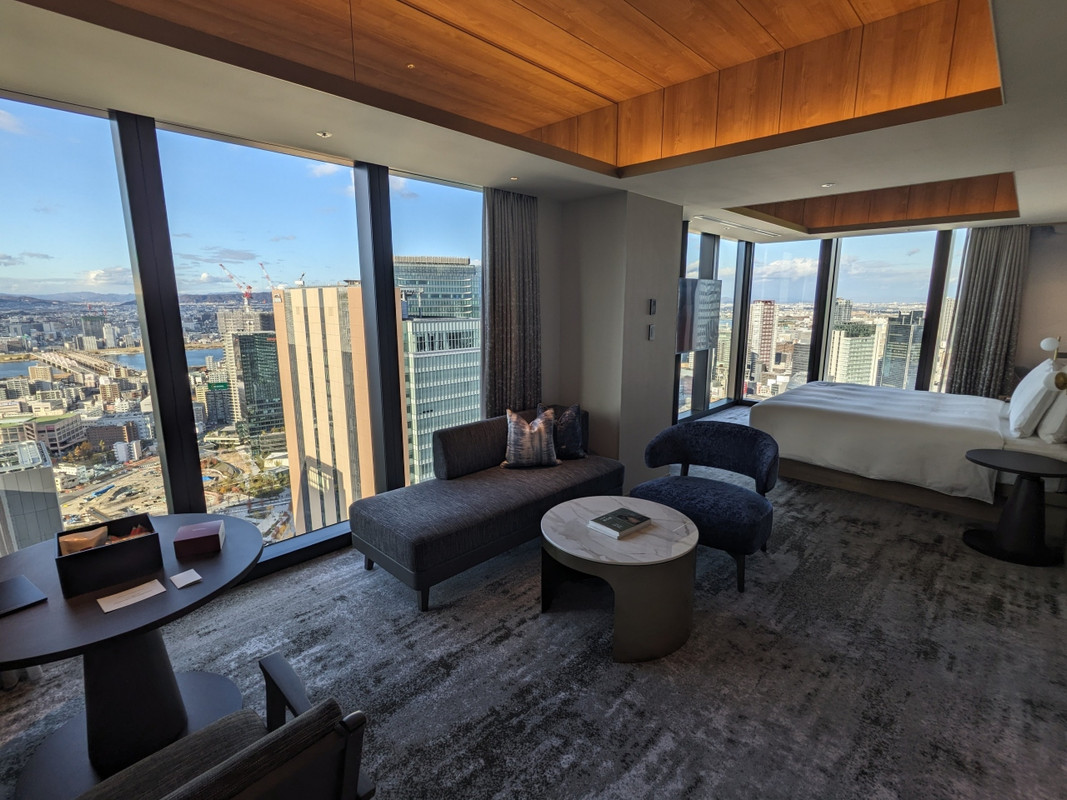 新規開業の今話題のホテル。ポイント泊でオトクな日があったので急遽行ってみた。JR大阪駅隣りのKitteビルの29階がロビーでその上が客室となる。マリオット大阪ほどではないにしろ、なかなかの景観。お部屋はほどほどの高級感でシンプルにまとまった感じ。このホテルの真骨頂は朝食にあって、日本一豪華な朝食とされる。