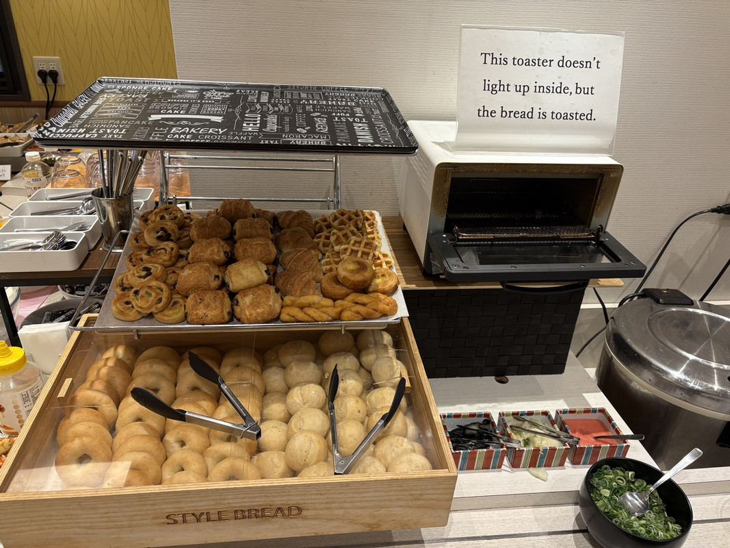 朝食ブッフェは種類豊富で鰻蒲焼きもあり