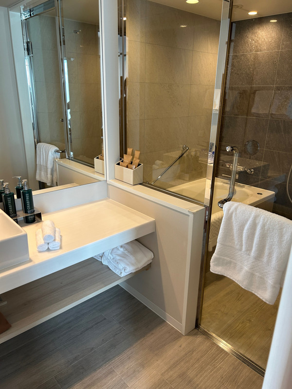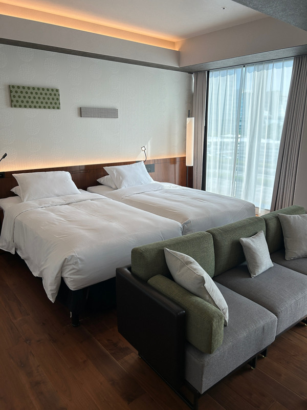 今回は新しく出来たダブルツリーbyヒルトン東京有明で1泊。友達と有明アリーナでのライブに行く為早くからポイントを使って予約しました。りんかい線の国際展示場駅またはゆりかもめの有明駅どちらも直ぐ近くです。但し有明アリーナ迄は徒歩20分程掛かるので暑いこの時期は大変でした。お部屋はアップグレードされてプレミアムツインで広く快適ですが、隣の部屋の音やお風呂トイレ等音は響きやすく完璧とは言えませんね(汗)