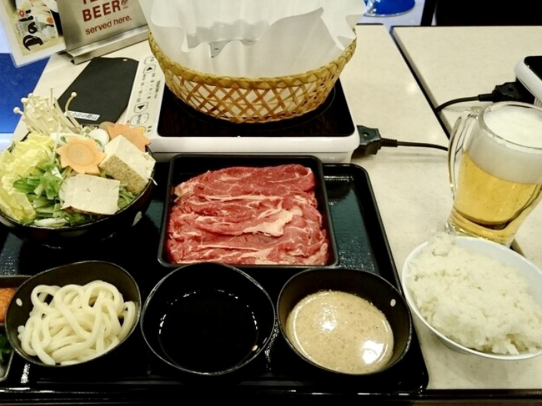 エビスビール(200円)の自動販売機もありました。夜ご飯は、しゃぶしゃぶ (950円)で気軽に利用でき、リーズナブルな料金設定です。味噌汁、ご飯はおかわりができ、お肉おかわり400円でした。朝ごはんは、東横インは、朝ごはんが無料です。まぁまぁの内容。ビジホで夜の食事ができるのは嬉しいですね。1 / 6