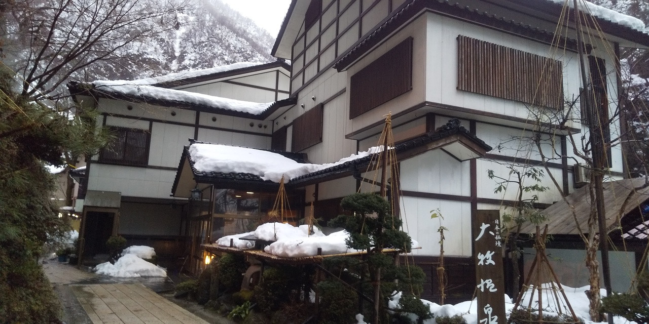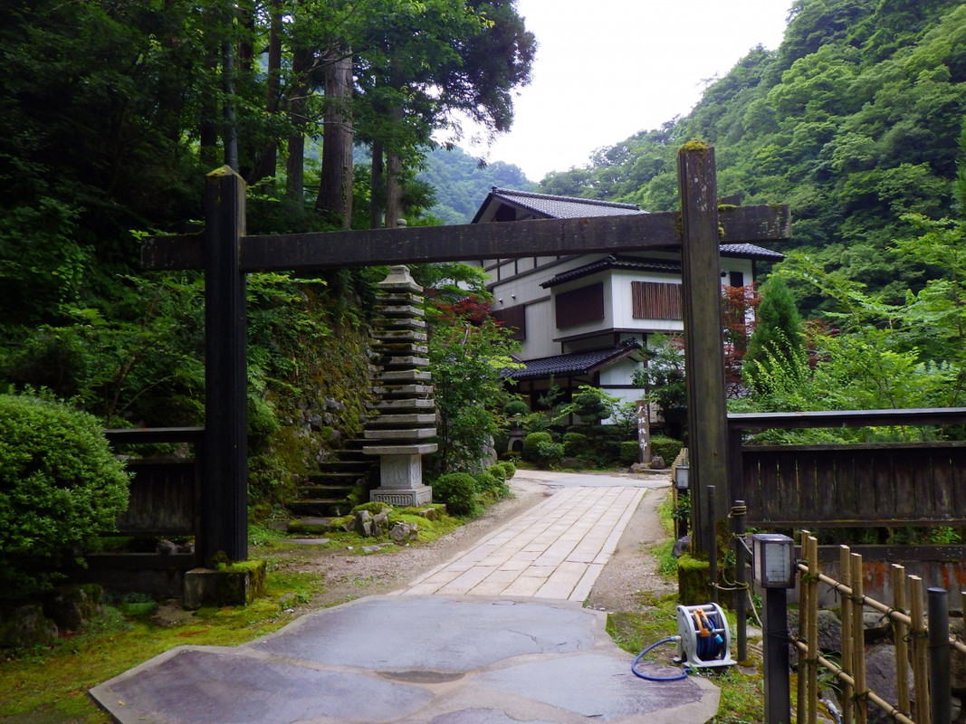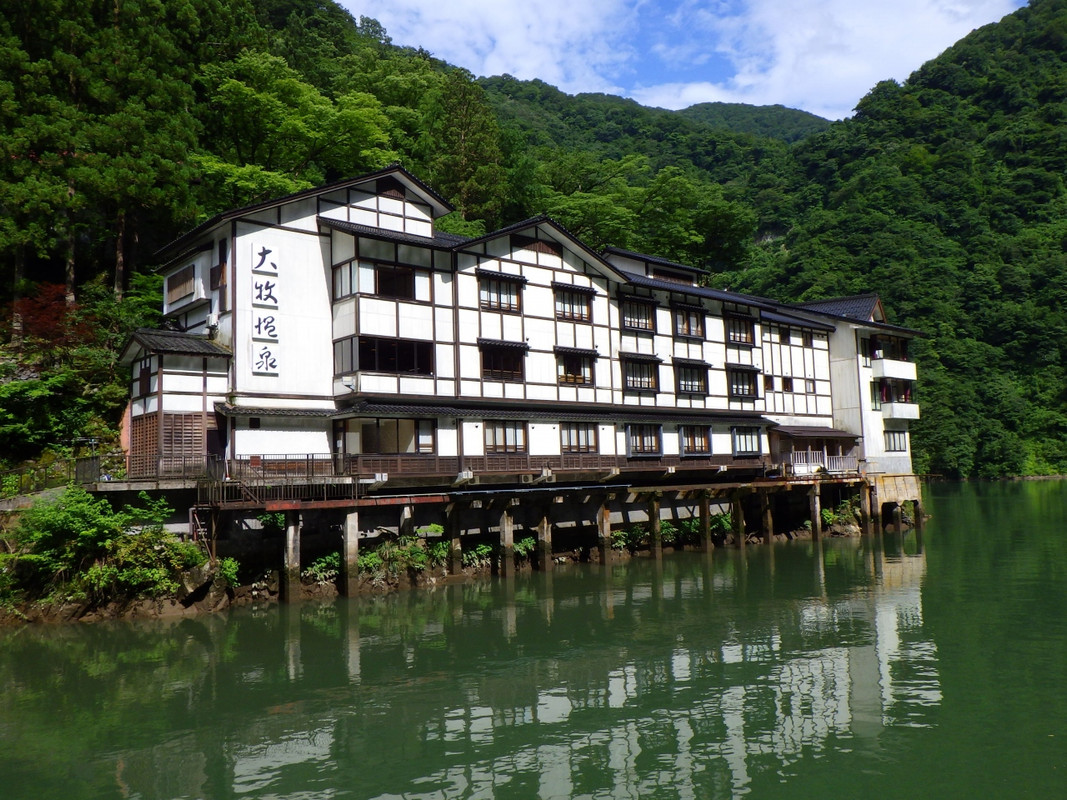 庄川の川縁に建つ秘湯の大牧温泉観光旅館。テレビの旅番組やドラマで紹介される有名な旅館で、館内には多くの芸能人のサインが飾られていました。