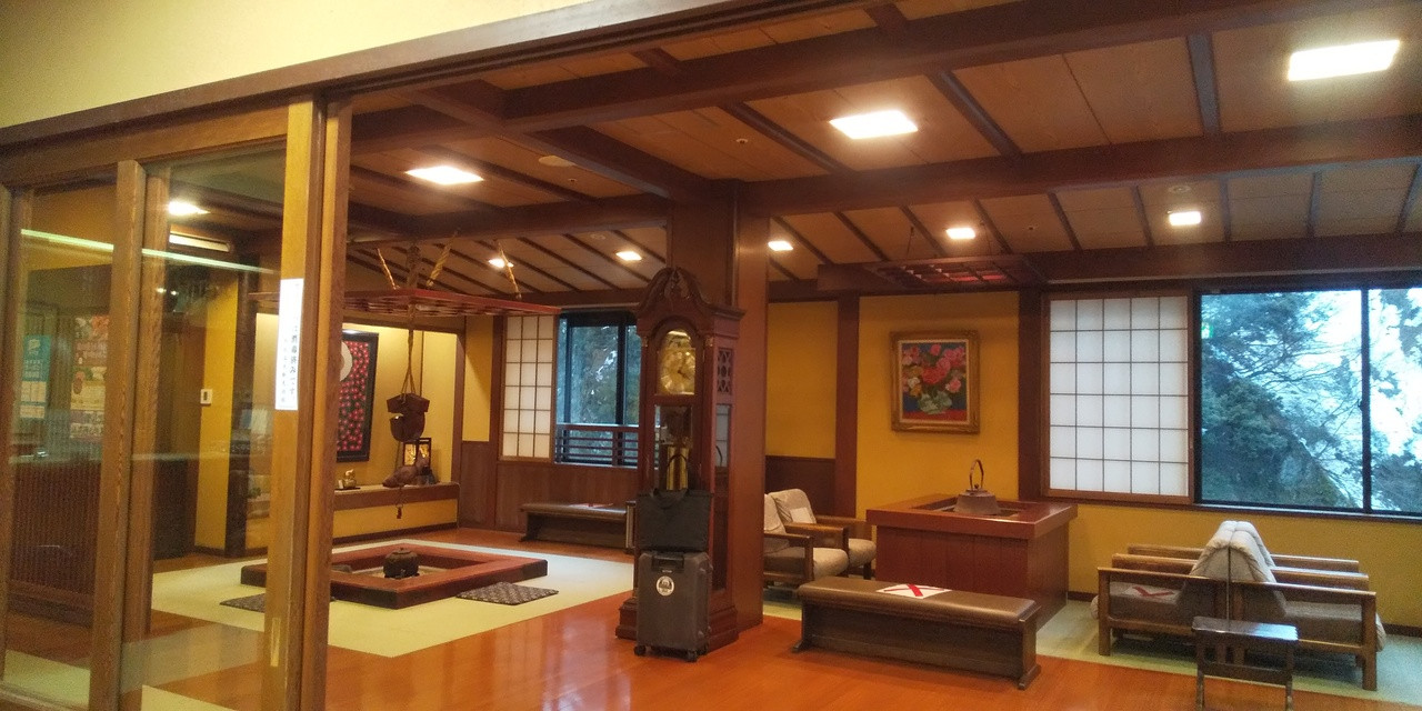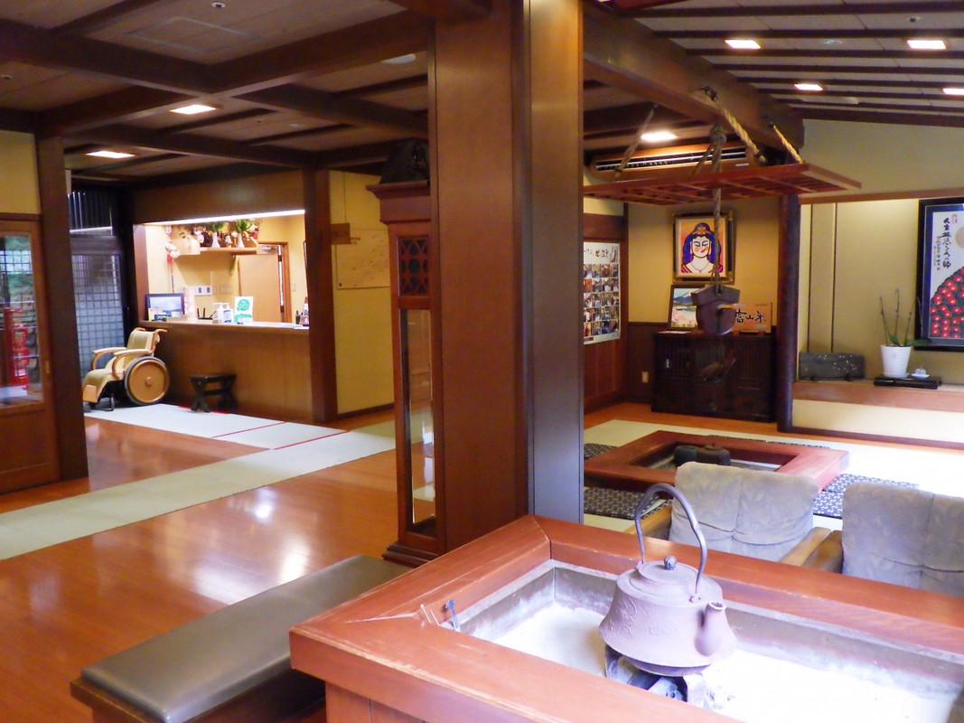 フロントに囲炉裏が、ここでしかスマホが通じない。