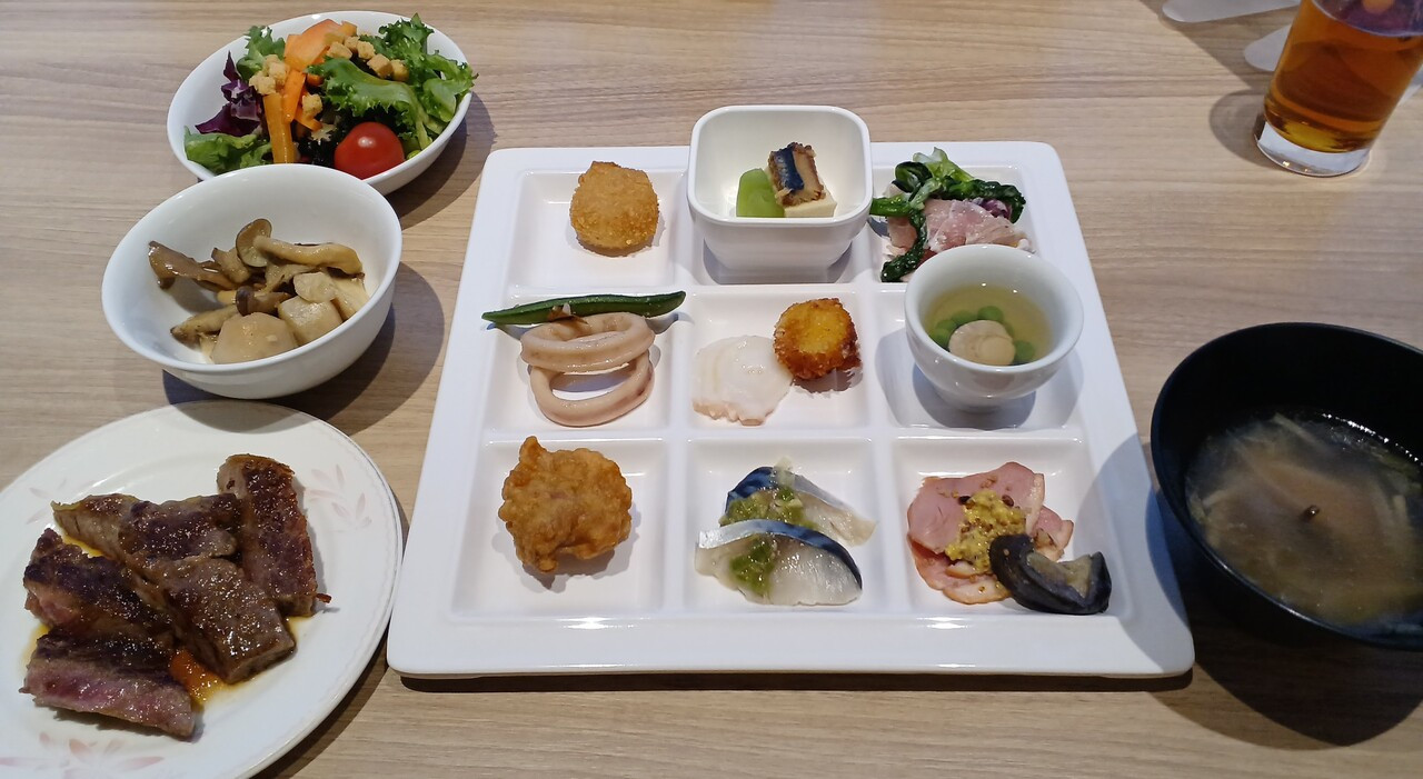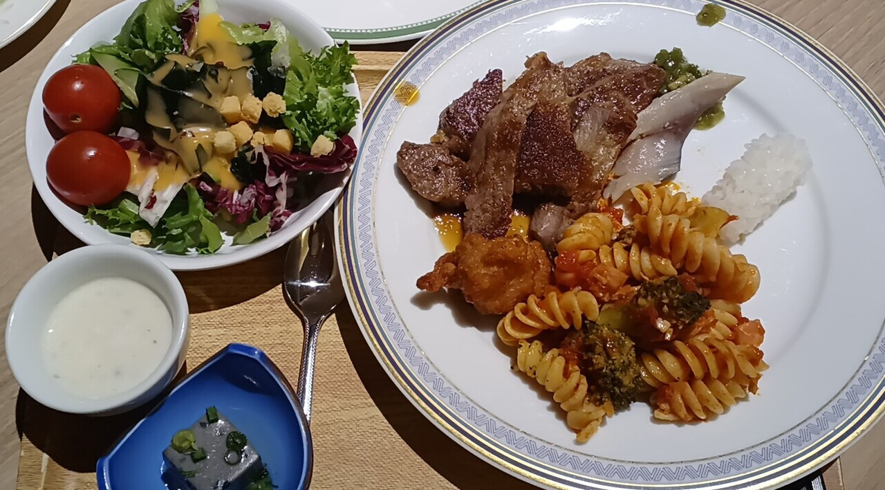 約7ヶ月ぶりに宿泊。今回も2食付きプラン。ツインの部屋。11月だからエアコンは暖房のみ。窓は開かないので暑い場合は切るのみ。冷蔵庫にミネラルウォーターのサービスがあったのが嬉しい。食事はビュッフェ形式。ラーメンと夕飯のステーキが美味しかった。