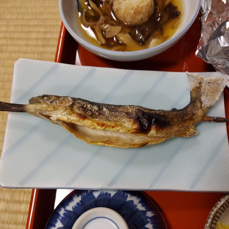 料理は、岩魚の塩焼きや名物の山の芋鍋等の地のものが提供されます。