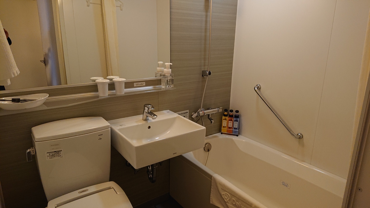 高松駅から歩いて10分ほどと離れていますが、ホテルの周りは繁華街でショップ、飲食店も多い場所です。ホテルは複合商業ビルの8階以上にあり、最初わからずにまわりをぐるっと一周してしまいした。上のほうを見て歩くのがいいのかもしれません。入り口も狭い場所にあります。部屋は広く、きれいに整備されていて、バスルームも広く使いやすかったです。朝食は2階にあるレストランですが、冷凍食品、業務用の食品などが多く、おいしくなかったです。