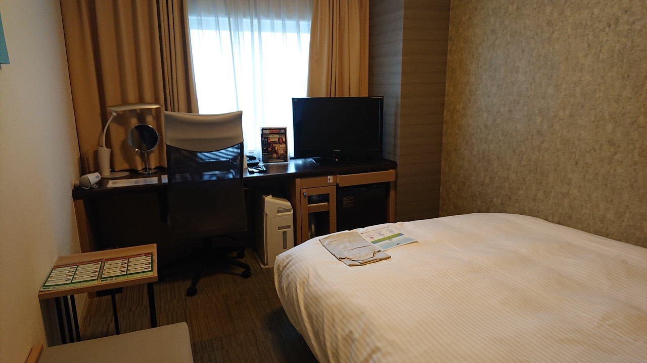 但し、ホテルは共同ビル高層階に位置するも同居の公立駐車場や公立図書館とは入口が同一で、その場は狭隘で昼間から泥酔したホームレスが寝ていたりと環境は感心しません。
