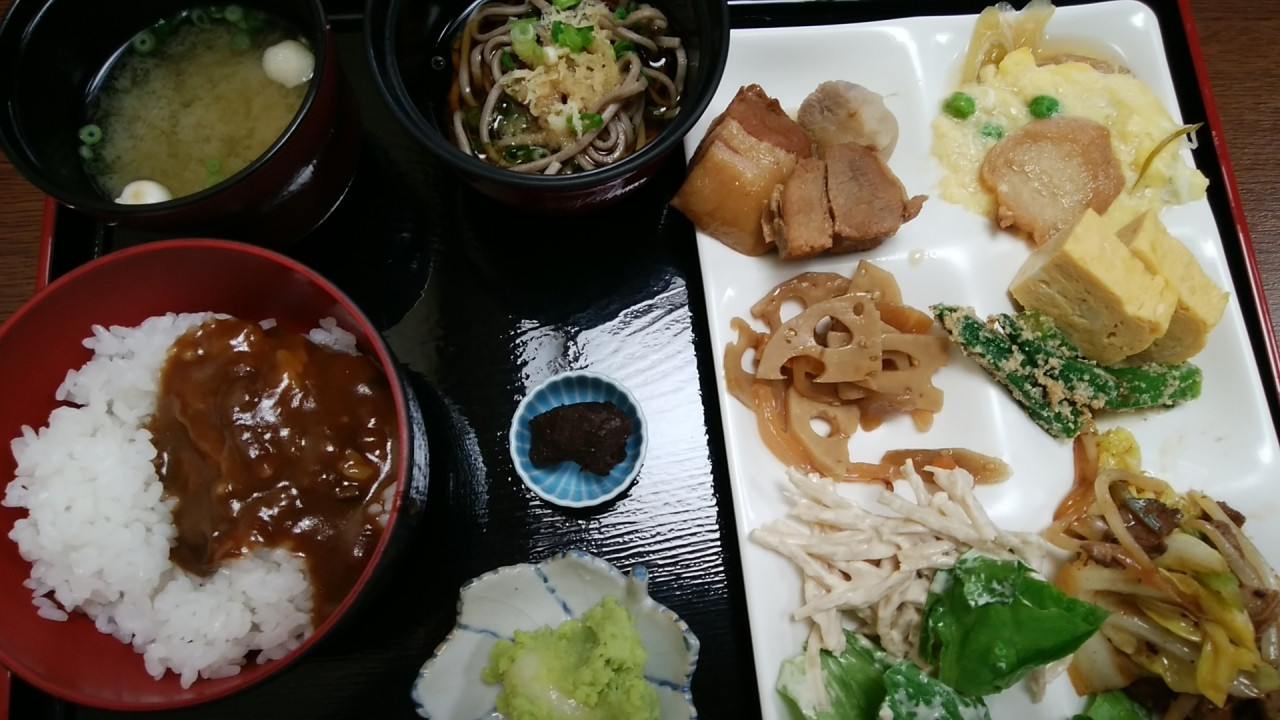 朝食:ブッフェ、品数も多く郷土色あるおかず、洋食もあり。味よし、カレーライスもあり。