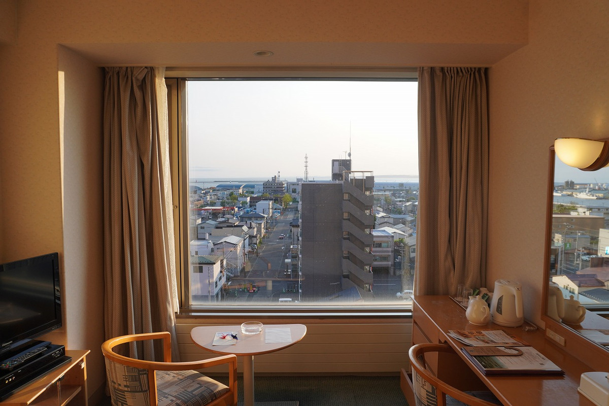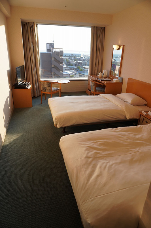 釧路市内には幾つもホテルがあります。プリンスホテルは駅から10数分歩き、繁華街からもちょっと離れています。高層階からの眺めがよさそうなので今回こちらを選びましたが、その日は夕焼けが見れず残念でした。食事するにも周りは何もないし、暗いです。よかったのは部屋のベッド、いつもはツインを取りますが満室でダブルしか空いていませんでした。ところがそのベッドがとても大きくて寝心地がよかったので満足です。
