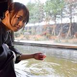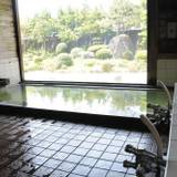 温泉は宿泊施設とは別棟にあり、部屋からは少々距離がある。大浴場と小浴場があり、湯はやや褐色のサラッとしたナトリウム硫酸塩泉。大浴場は大きな風呂とぬる湯の2種があり、ヒノキをふんだんに使った落ち着いたたたずまいで、庭園を眺めながら湯につかれる。訪問時は修学旅行生の利用するため18時30分までしか入れず、到着して大慌てで10分ほどしか入れなかったのは残念。