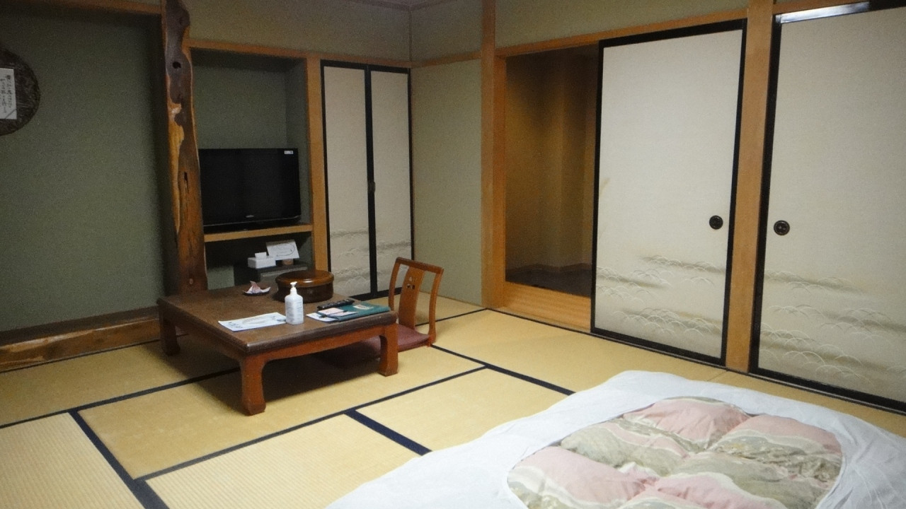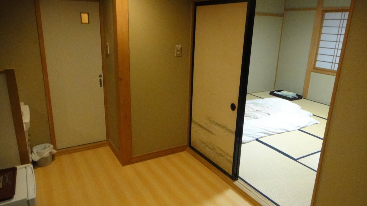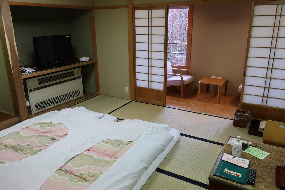 泊った部屋はバスなしの和室。10畳くらいあり一人で泊まるには広すぎるほどで、快適に過ごせる。冷蔵庫には冷えたミネラルウォーターが入っていた。