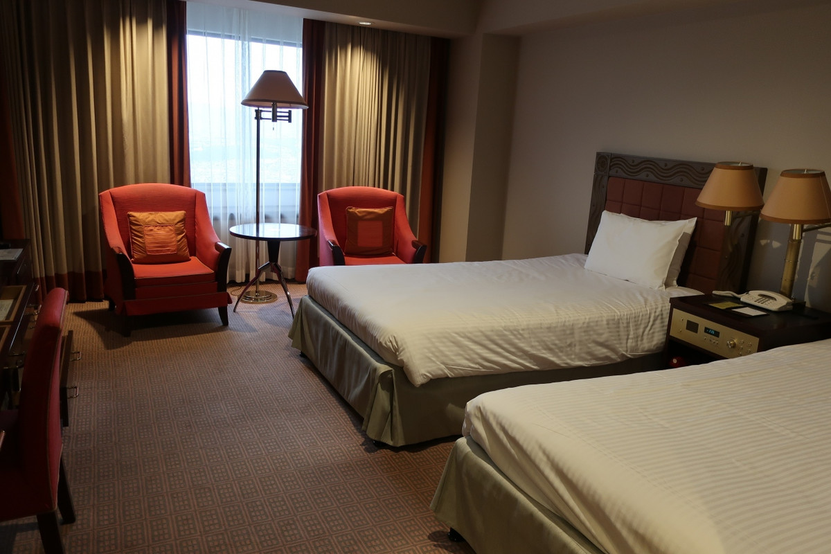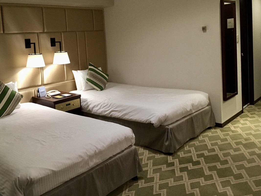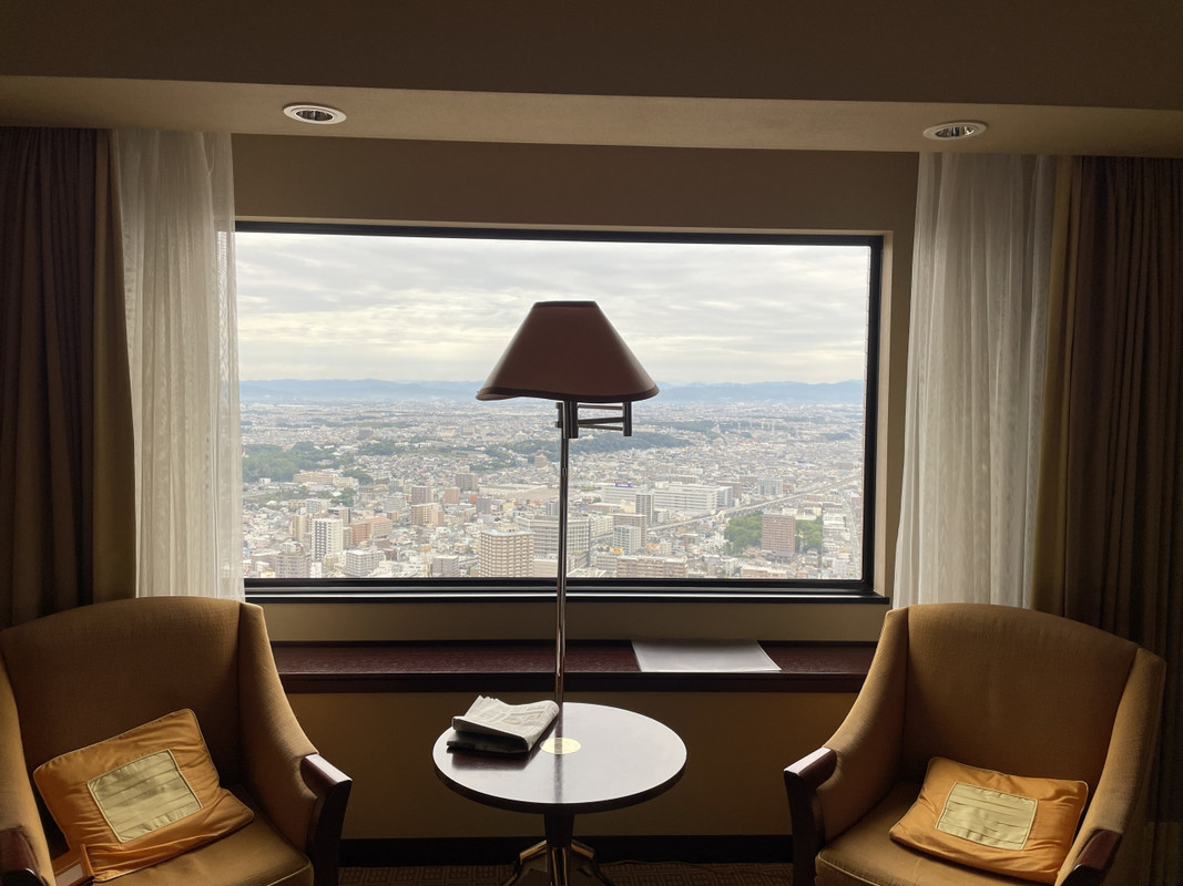 さすがオークラ系のホテル、ロビーの豪華さからちがいます。お部屋はスタンダードツイン。41階の北側なので浜松駅や遠州灘は見えませんでしたが、高層階ということで眺望も良く綺麗なお部屋で快適に過ごせました。