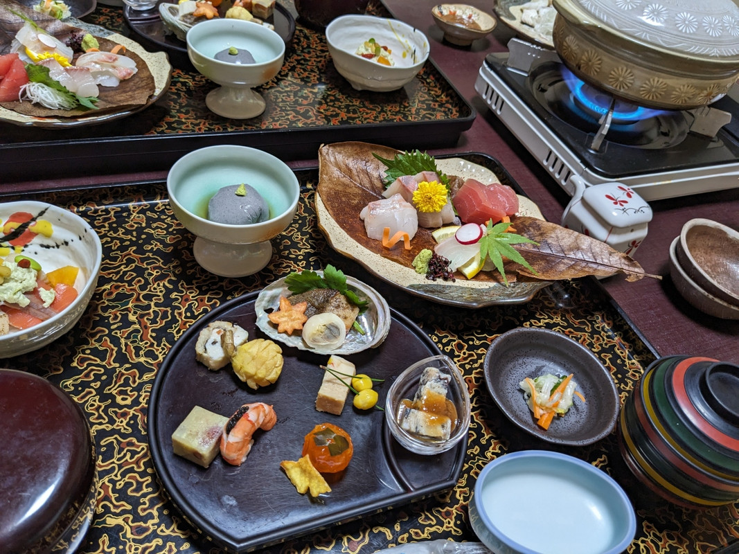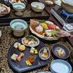あんこう鍋目当てで予約しましたが、夕食は鍋(肝が全部汁に溶け込んでしまったのが残念)の他に、前菜、お刺身(一切れが分厚い)、揚げ物、金目の煮付けなどあって、お腹いっぱいになりました。朝食もそうだったのですが、畳に座って食べるので、すぐにお腹がきつくなります。椅子に座って広間で食べたかったです。朝夕ともに手作り感は少ないかな? 本館の部屋でしたが、遠くに紅葉が見えたものの、眺めはそんなに良くなくて‥。温泉は冷鉱泉ですが、40度半ばに加温されており、湯加減はちょうどよかったです。そもそも宿泊客が多くないので、ゆったり入れます。家族風呂もあり、こちらは予約不要で空いていれば利用できます。ロビー奥にはドリンクのセルフサービスがあります。小さな渓谷にひっそりとある静かな旅館です。