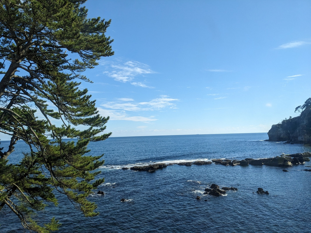 入浴の前にまず食堂で腹ごしらえ。メニューは海鮮系が多いですね。レストランの窓の外には太平洋が広がって、眺めがいいです。食事をすると一人500円の入浴割引券がもらえるので、それを手に日帰りの受付へ。お風呂は広い内湯と露天が2つ。露天は適温で、長湯と眺めが楽しめてよかったです。泉質もマイルドで◎。