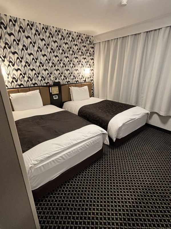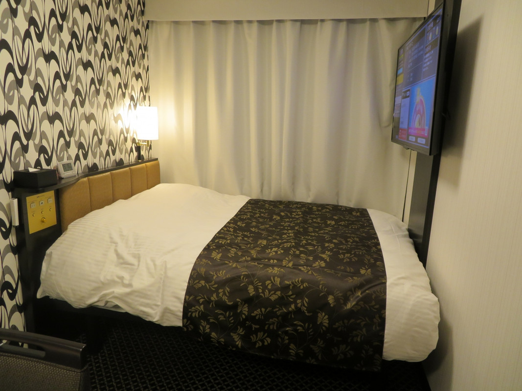 決して広いお部屋ではなけれど、スーツケースはベッドの下に収納できたり、空間を上手に使って滞在できる工夫を感じられ、1泊泊まるだけなら十分な広さ。水回りは便座の蓋を閉めないと流せないほど狭いけれど、宿泊代を考えたら仕方ないかなと思えます。