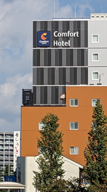 豊橋駅から徒歩数分のところにある「コンフォートホテル」です。客室内は、シンプルなデザインでしたが、新しく、綺麗なホテルだったので気持ち良く過ごすことができました。また、無料で朝食を食べることもできるなど、コスパが良いホテルでした。