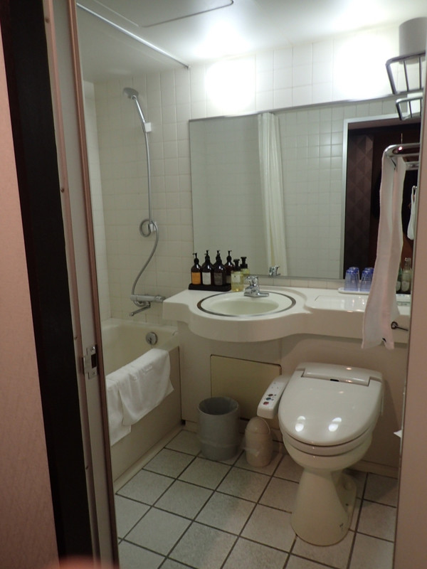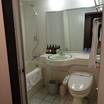 32㎡は二人には十分な広さ。ブラウンを基調とした落ち着いた内装。 シングルベッド2台とソファベッドが2台。アンティークなデスクに、液晶テレビはちょっと小さめ(24型程度)。バスタブ、トイレ、洗面所一体のユニットバスは手狭なのと床がタイル張りで冷たい感触。段差もあって危ない。
