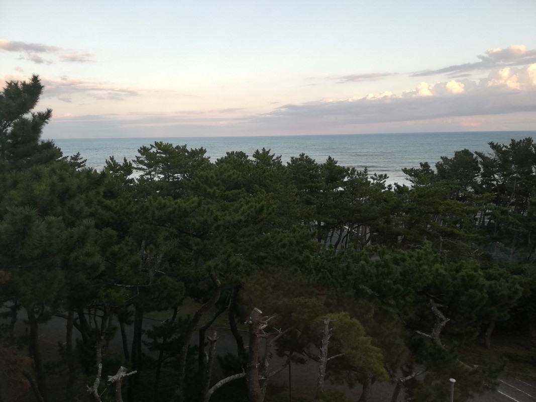 今回はスタンダードツインに1泊。部屋は4階。「オーシャンビュー」ではあるが、松林が邪魔をして、海が見えるのは一部。