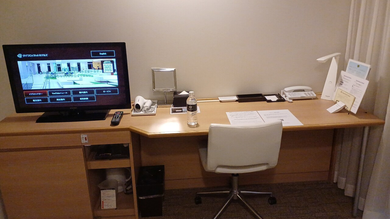 デスクの下の羽目板が曲がっている。前泊者が盗聴器でも?